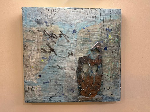 In total, there are 48 pieces of art in the show including oil, acrylic, assemblage and mixed media, watercolor, pen and ink, etchings, textiles, glass painting, and collage. Be sure to check it out!
